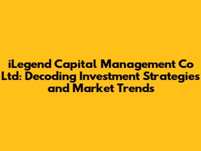 Hey guys! Let's dive deep into the world of iLegend Capital Management Co Ltd. We're going to explore what makes this firm tick, look at its investment strategies, and how it navigates the ever-changing financial landscape. Get ready for a journey filled with insights, analysis, and a good dose of financial know-how. This article is your go-to guide for understanding iLegend Capital and the strategies they employ to make their mark in the investment world. We'll break down complex concepts into easy-to-understand terms, making sure everyone, from seasoned investors to those just starting, can follow along.