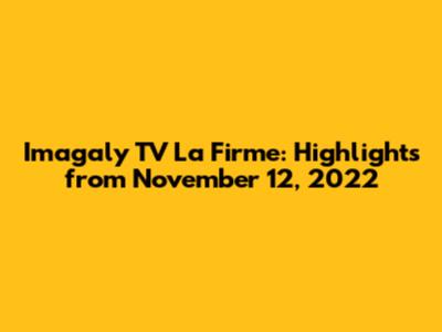 Let's dive into the exciting happenings of Imagaly TV La Firme on November 12, 2022! This article summarizes the key moments, discussions, and highlights from that day. Get ready to explore the insights and memorable segments that made this particular broadcast stand out. We'll cover everything from special guest appearances to groundbreaking announcements, ensuring you don't miss a thing.