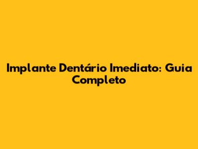 Implante Dentário Imediato: Guia Completo