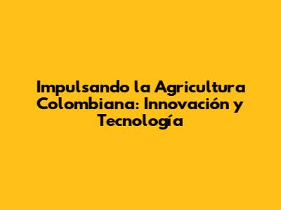 Impulsando La Agricultura Colombiana: Innovación Y Tecnología