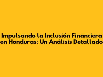 Impulsando La Inclusión Financiera En Honduras: Un Análisis Detallado