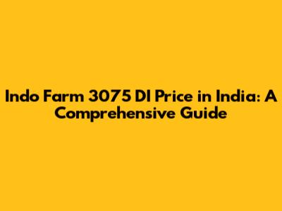 Indo Farm 3075 DI Price in India: Factors and Range