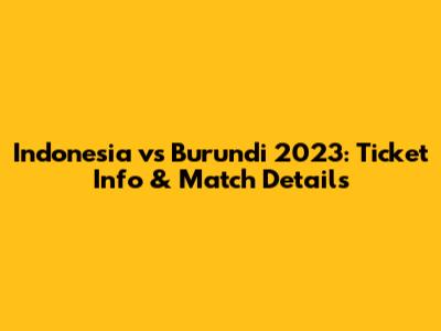 Indonesia Vs Burundi 2023: Ticket Info & Match Details