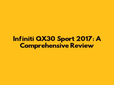 Infiniti QX30 Sport 2017: A Comprehensive Review