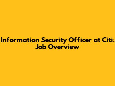 Information Security Officer At Citi: Job Overview