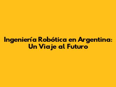 Ingeniería Robótica En Argentina: Un Viaje Al Futuro