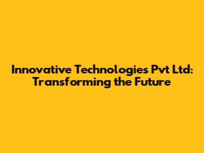 Innovative Technologies Pvt Ltd: Transforming The Future