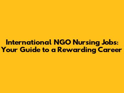 International NGO Nursing Jobs: Your Guide To A Rewarding Career
