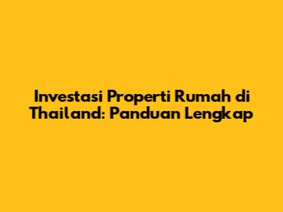 Investasi Properti Rumah Di Thailand: Panduan Lengkap