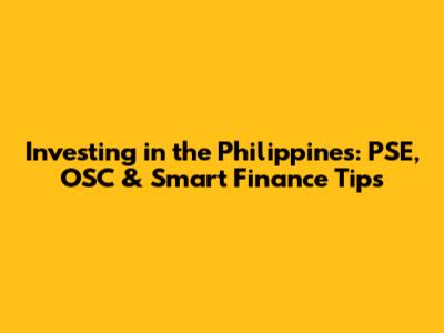Investing In The Philippines: PSE, OSC & Smart Finance Tips