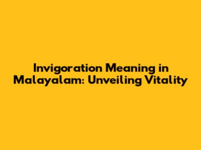 Invigoration Meaning In Malayalam: A Comprehensive Guide