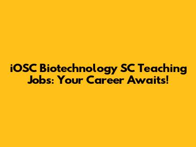 IOSC Biotechnology SC Teaching Jobs: Your Career Awaits!