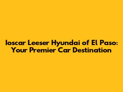 Hey guys! Are you on the hunt for a new ride in El Paso? Look no further! Ioscar Leeser Hyundai of El Paso is your go-to dealership. Let's dive into what makes this place a fantastic choice for all your automotive needs. From a wide selection of vehicles to top-notch service, Ioscar Leeser Hyundai has got you covered. Whether you're looking for a fuel-efficient sedan, a spacious SUV, or a powerful truck, they have something for everyone. Their friendly and knowledgeable staff are always ready to assist you in finding the perfect vehicle that fits your lifestyle and budget. Plus, they offer competitive financing options to make your dream car a reality. So, if you're in the market for a new or used car, be sure to check out Ioscar Leeser Hyundai of El Paso. You won't be disappointed!