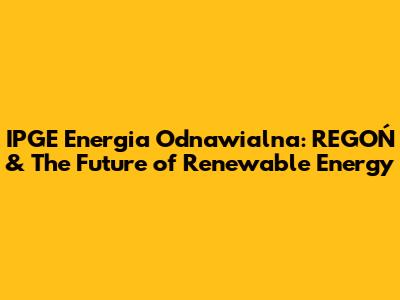IPGE Energia Odnawialna: REGOŃ & The Future Of Renewable Energy