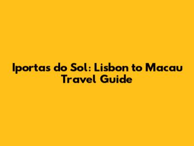 Iportas Do Sol: Lisbon To Macau Travel Guide