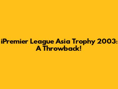 IPremier League Asia Trophy 2003: A Throwback!