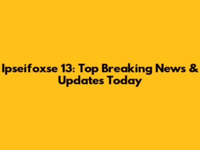 Ipseifoxse 13: Top Breaking News & Updates Today