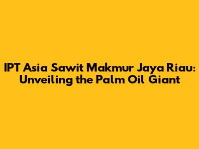 IPT Asia Sawit Makmur Jaya Riau: A Comprehensive Overview