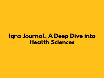 Iqra Journal: Your Guide To Health Science Insights
