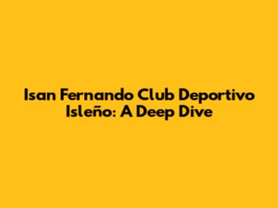 Let's dive deep into the world of Isan Fernando Club Deportivo Isleño. For those of you who are passionate about football, or soccer as some might call it, you know that every team has its own unique story, its own identity, and its own set of dedicated fans. Isan Fernando CD Isleño is no exception. Whether you're a die-hard supporter or just curious about this team, this article will provide a comprehensive look at what makes this club tick. We will explore its history, its achievements, its current squad, and what the future might hold. So, buckle up and get ready for a detailed exploration of Isan Fernando CD Isleño! We're going to cover everything from their humble beginnings to their most glorious victories, and even touch on some of the challenges they've faced along the way. Think of this as your one-stop shop for all things Isan Fernando CD Isleño. By the end of this article, you'll have a solid understanding of what this club is all about and why it holds a special place in the hearts of its fans. So, let’s kick things off and get started! This journey into the heart of Isan Fernando CD Isleño promises to be an exciting one, filled with interesting facts, memorable moments, and a deep appreciation for the beautiful game. Get ready to immerse yourself in the passion and dedication that define this remarkable football club. We'll leave no stone unturned as we uncover the story of Isan Fernando CD Isleño.