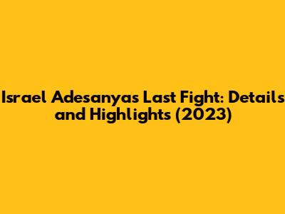 Hey guys! Let's dive into the details of Israel Adesanya's last fight in 2023. We'll cover everything from the lead-up to the match, the fight itself, and the aftermath. If you're a fan of "The Last Stylebender", or just love a good MMA showdown, you're in the right place. We'll break down the key moments, strategies, and what this fight means for Adesanya's career. So, buckle up and let's get started!