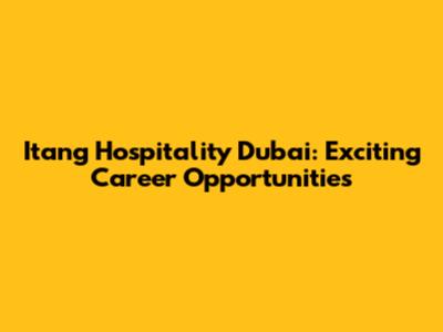 Itang Hospitality Dubai: Exciting Career Opportunities