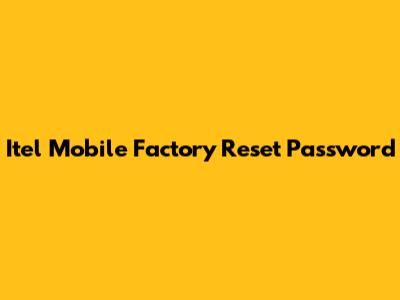 Itel Mobile Factory Reset: Password Forgotten?