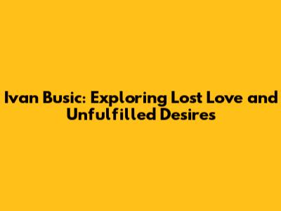 Ivan Busic: Exploring Lost Love And Unfulfilled Desires