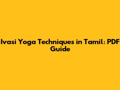 Ivasi Yoga Techniques In Tamil: PDF Guide