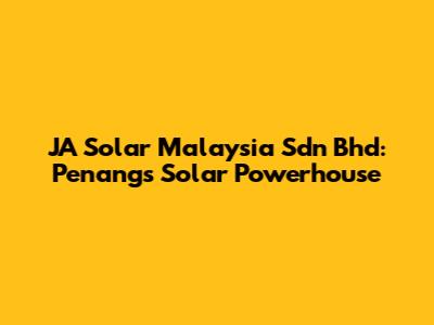 JA Solar Malaysia: Penang's Solar Powerhouse