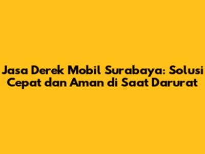 Hai, guys! Pernahkah kalian mengalami situasi darurat di jalan, seperti mobil mogok di tengah jalan atau ban bocor di tempat yang sepi? Pasti bikin panik, kan? Nah, di Surabaya, ada solusi yang bisa diandalkan, yaitu jasa derek mobil Surabaya. Artikel ini akan membahas secara mendalam tentang layanan derek mobil di Surabaya, mulai dari jenis layanan yang tersedia, keuntungan menggunakan jasa derek, tips memilih jasa derek yang tepat, hingga rekomendasi penyedia jasa derek terbaik di Surabaya. Yuk, simak ulasan lengkapnya!