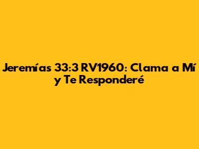 Jeremías 33:3 RV1960: Clama A Mí Y Te Responderé