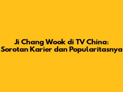 Ji Chang Wook Di TV China: Penampilan, Proyek, Dan Popularitas