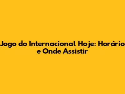 Jogo Do Internacional Hoje: Horário E Onde Assistir