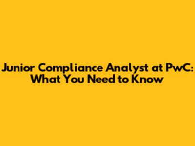 Junior Compliance Analyst At PwC: What You Need To Know