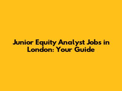 Junior Equity Analyst Jobs In London: Your Guide