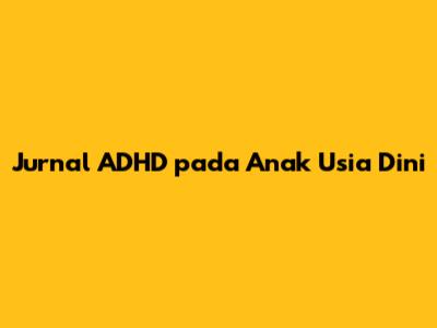 Jurnal ADHD: Memahami Anak Usia Dini