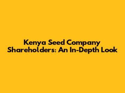 Kenya Seed Company Shareholders: An In-Depth Look