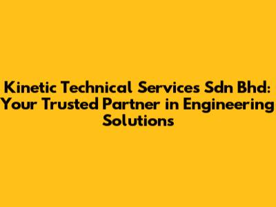 Hey guys! Are you looking for a reliable and experienced engineering services provider in Malaysia? Look no further than Kinetic Technical Services Sdn Bhd! We are a leading company specializing in a wide range of technical services, committed to delivering excellence and innovation in every project we undertake. This article will dive deep into what Kinetic Technical Services Sdn Bhd is all about, highlighting our core services, our commitment to quality, and why we stand out as a trusted partner for your engineering needs.