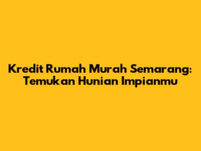Kredit Rumah Murah Semarang: Temukan Hunian Impianmu