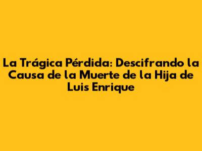 La Trágica Pérdida: Descifrando La Causa De La Muerte De La Hija De Luis Enrique