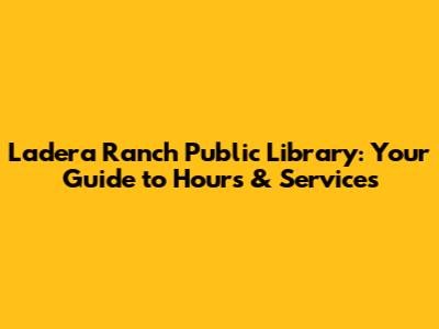 Hey guys! Are you trying to figure out when you can swing by the Ladera Ranch Public Library? Knowing the library hours is super important, whether you're planning to dive into some serious studying, grab a new book, or just need a quiet place to chill. This guide will give you all the deets on the Ladera Ranch Library's hours, plus a little extra about what makes this library so awesome. Let's get to it!