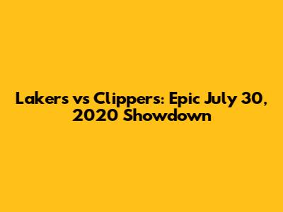Lakers Vs Clippers: Epic July 30, 2020 Showdown