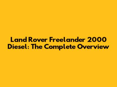 Land Rover Freelander 2000 Diesel: The Complete Overview