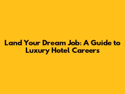 Land Your Dream Job: A Guide To Luxury Hotel Careers