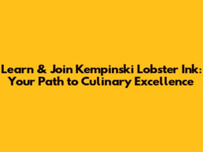Learn & Join Kempinski Lobster Ink: Your Path To Culinary Excellence