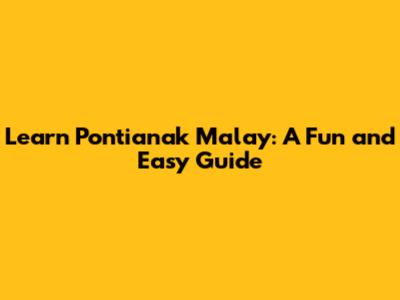 Learn Pontianak Malay: A Fun And Easy Guide