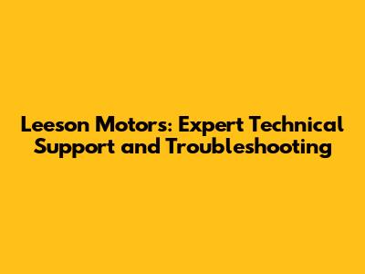 Leeson Motors: Expert Technical Support And Troubleshooting