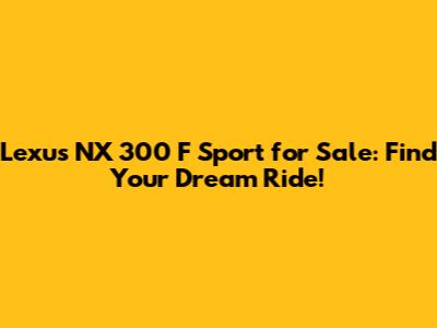 Lexus NX 300 F Sport For Sale: Find Your Dream Ride!
