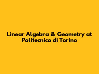 Linear Algebra & Geometry At Politecnico Di Torino